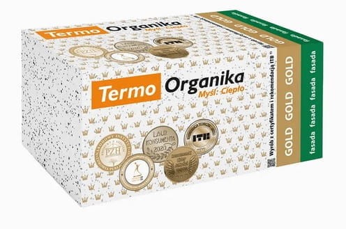 Termo Organika Gold fasada 038. Lambda 0,038. Płyty o wymiarach 500x1000 mm. Grubość płyt 1-30 cm (frez 5-30 cm). Jeśli dana grubość nie jest dostępna w polu wyboru, wymagany jest kontakt ze sprzedawcą – wynika to z innej objętości paczki.